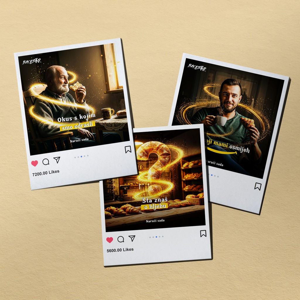 Designed warm, inviting social media visuals for a Bosnian bakery, focusing on showcasing fresh products and enhancing brand presence online.